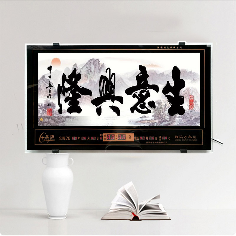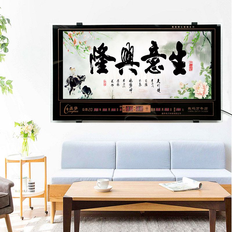 新房客廳裝飾日歷掛鐘,家和風(fēng)景萬年歷,超薄七彩燈光更漂亮