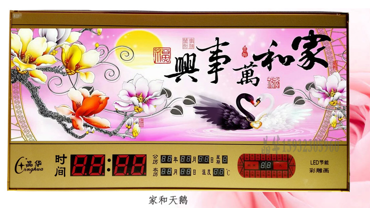 新房客廳裝飾日歷掛鐘,家和風景萬年歷,超薄七彩燈光更漂亮